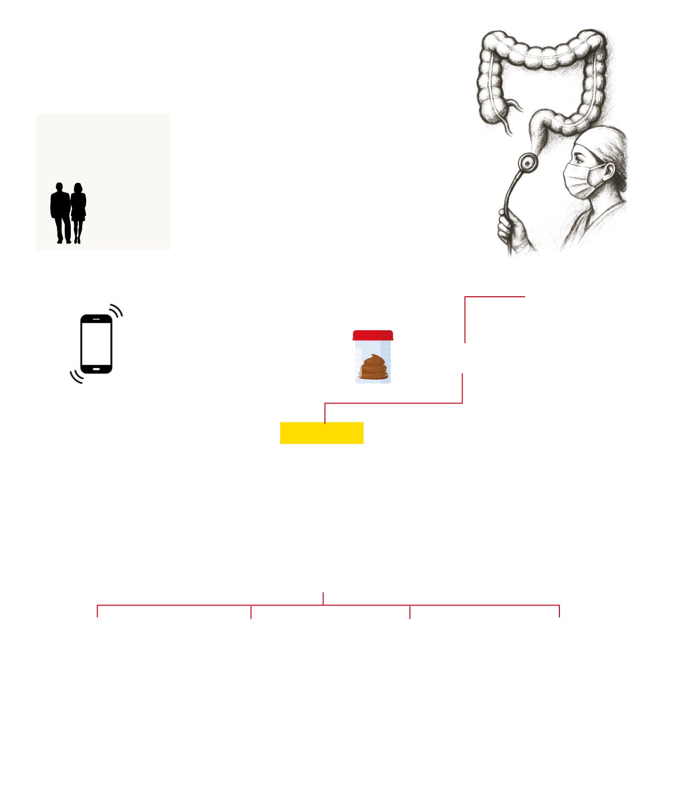 Se invita a participar a partir de un SMS. Si se acepta el cribado se remite un test para heces que se recoge en los