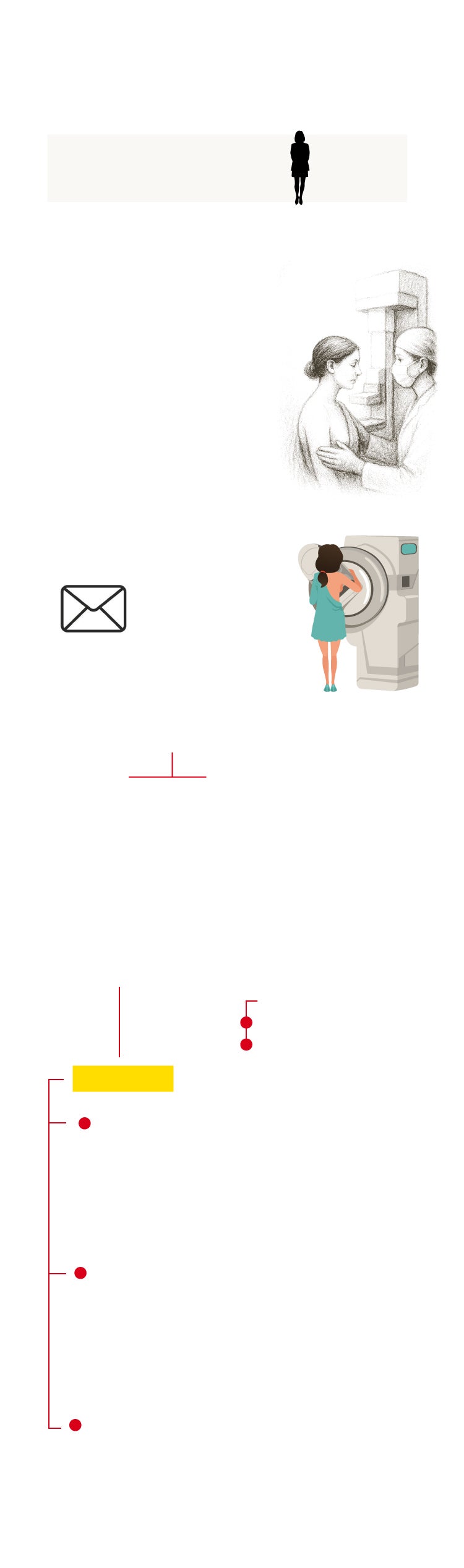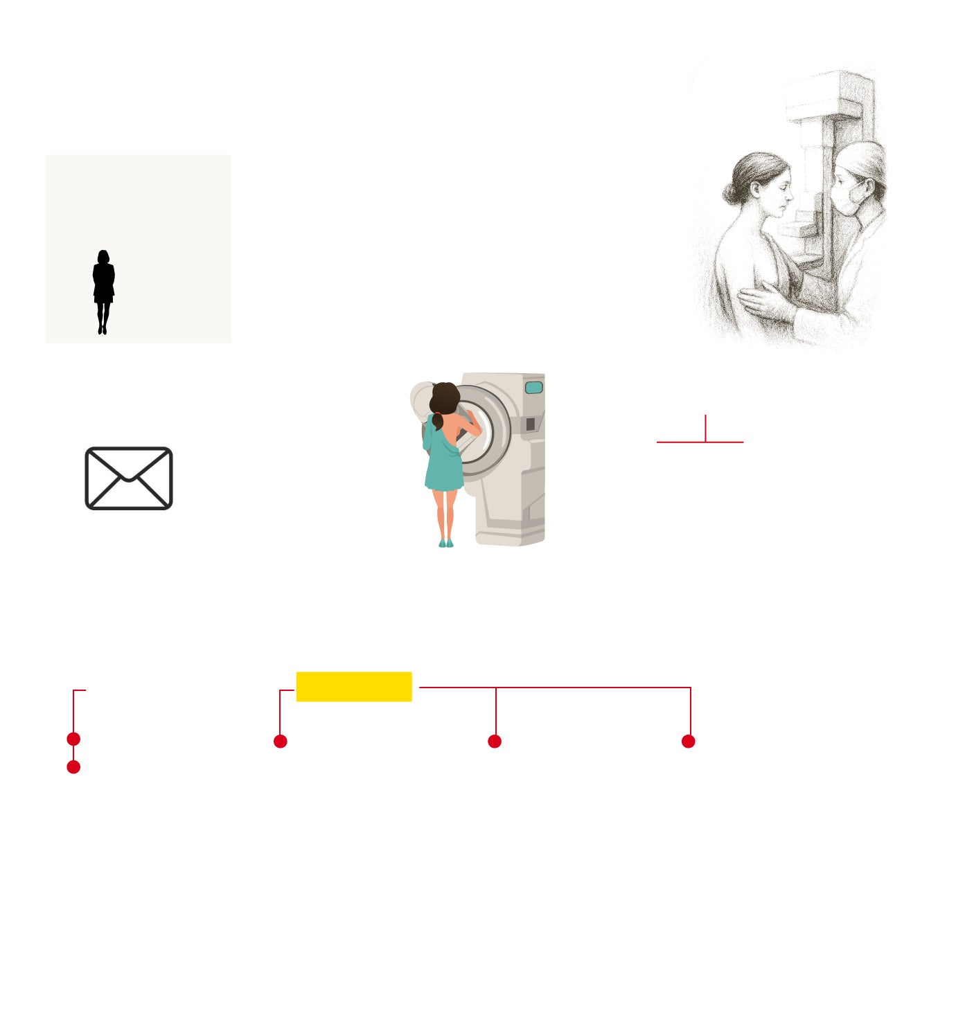 Las pruebas de mamografía se realizan para confirmar o descartar el diagnóstico de carcinoma. La citación es personal y enviada por carta 10-15 días antes con la información sobre el lugar, la fecha y la hora de la cita, así como recomendaciones antes, durante y después de la prueba. Se puede cambiar la fecha.