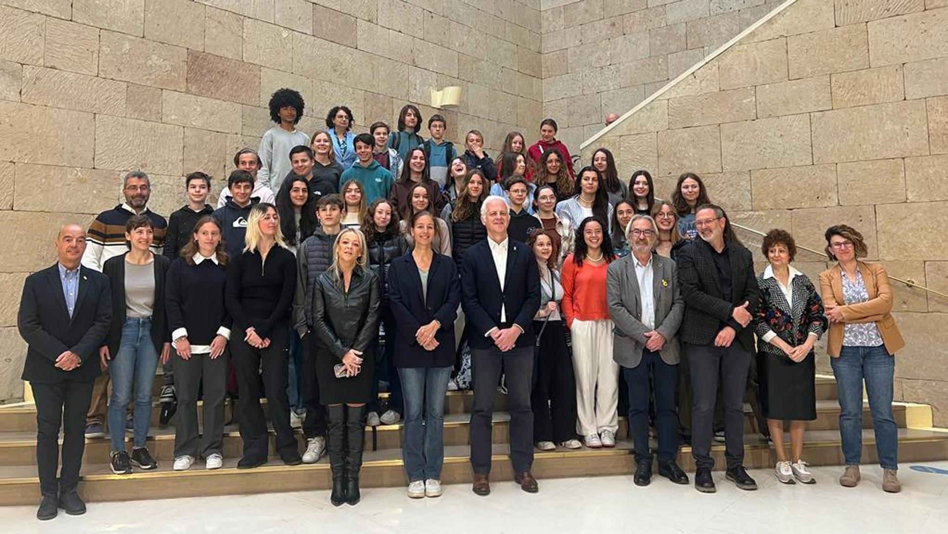 Con el fin de darles la bienvenida, el alcalde de la ciudad, Pablo Hermoso de Mendoza, la concejala de Educación, Beatriz Nalda, y algunos concejales de otros grupos municipales les han recibido en el Ayuntamiento de Logroño la mañana de este martes.
