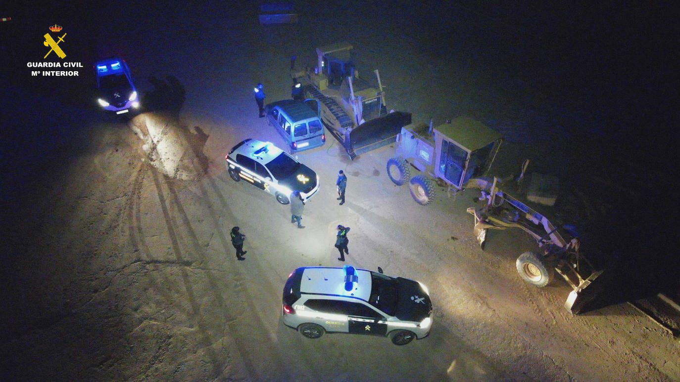 En uno de estos operativos agentes del Equipo Pegaso que operaban en la zona con un dron de reconocimiento, detectaron con la cámara térmica de la aeronave un vehículo tipo furgoneta acercándose a la maquinaria de obra, alertando de ello a las unidades terrestres que se desplazaron al lugar y sorprendieron in fraganti a los autores de los robos en el momento que se disponían a extraer el gasoil de una de las maquinas con una manguera.