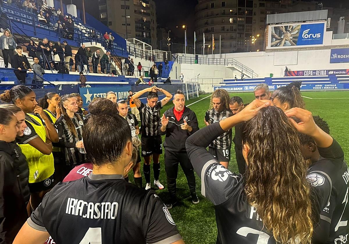 El DUX tomó ventaja en el minuto 34: Iria se llevó el gato al agua, tras un despiste de la zaga, y aprovechó la coyuntura favorable para superar a la portera de vaselina. Pese al gol encajado, las locales reaccionaron bien y nivelaron la balanza de la tercera eliminatoria copera. Así, justo antes del descanso, en el añadido del primer tiempo, un saque de esquina lanzado por Natalia encontró un remate inapelable de Sara López para empatar el partido. Las gradas del Nou Sardenya empezaron a creérselo.