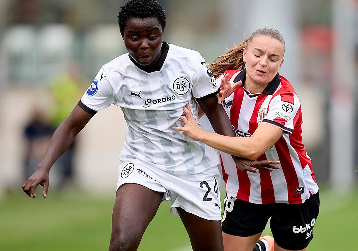 El choque comenzó con el Athletic más entonado, tratando de imponer su ritmo y su juego combinativo. Maitane dispuso de la primera gran ocasión del partido, pero no logró conectar el remate a escasos metros de la portería. Poco después, la riojana Sara Ortega lo intentó desde fuera del área, sin fortuna.