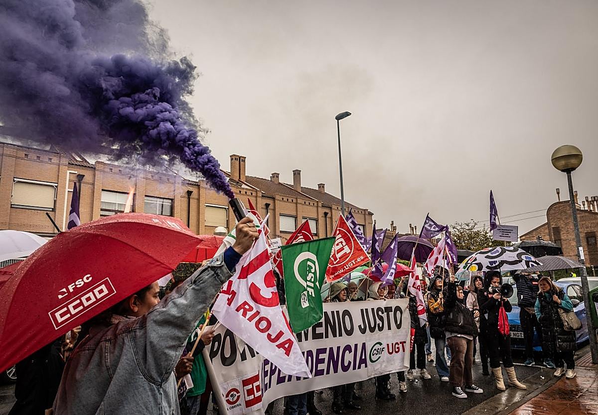 Los sindicatos continuaron este viernes denunciando la precariedad del sector de la dependencia en La Rioja con una concentración a las puertas de varias residencias de mayores en Logroño.