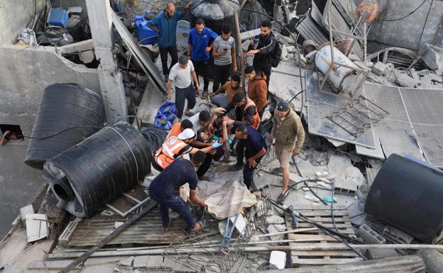Los servicios de emergencia rescatan el cuerpo de una de las víctimas mortales en los bombardeos sobre Gaza.