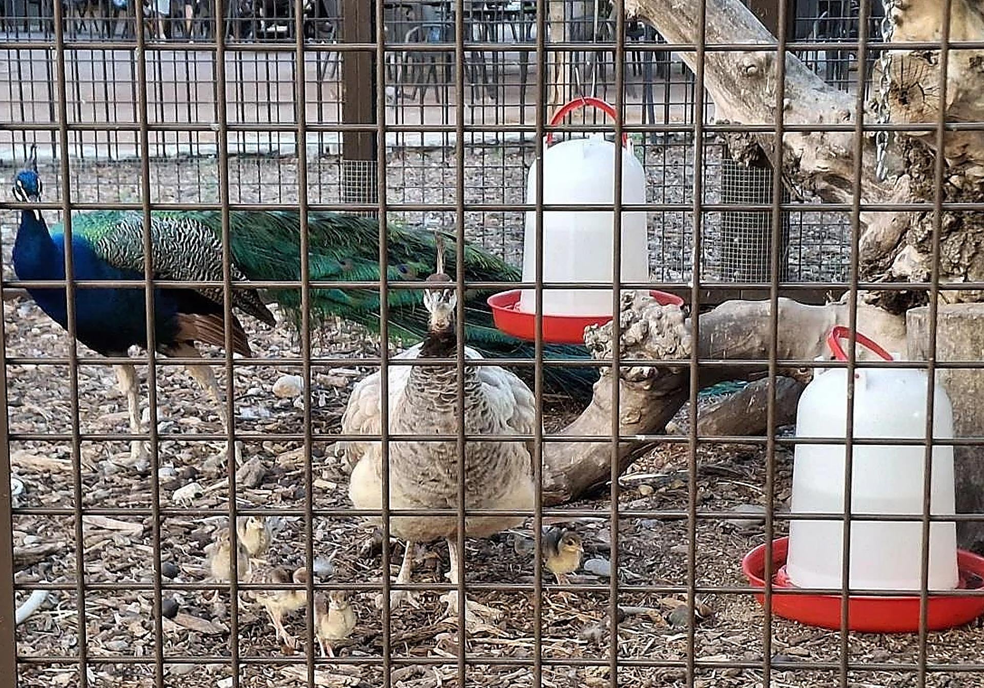 Los pavos reales enjaulados en el parque del Carmen de Logroño.
