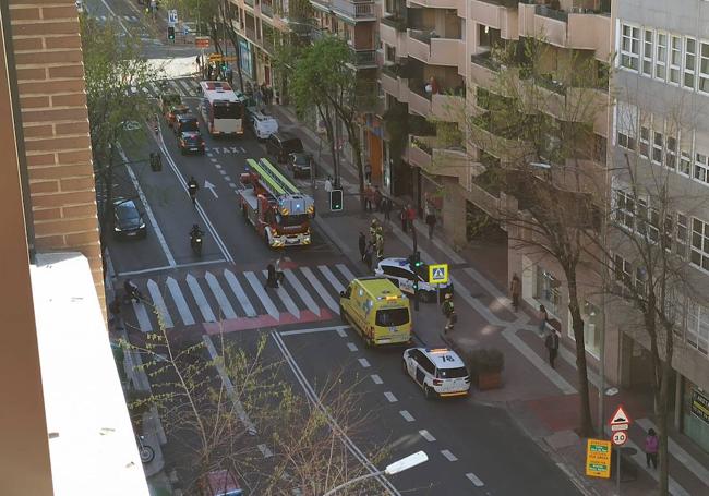 El ruido de las sirenas ha advertido alrededor de las 18 horas de la inminente intervención de los bomberos de Logroño en la calle Vara de Rey de la capital riojana, a la altura del número 32. Hasta la céntrica calle se han desplazado dos patrullas de la Policía Local y una ambulancia junto a los bomberos que han accedido al octavo piso de uno de los edificios con la ayuda de la escala telescópica, lo que ha llamado la atención entre los ciudadanos que transitaban por allí en ese momento y los vecinos de la propia casa.