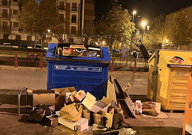 Contenedores a rebosar en avenida del Moncalvillo